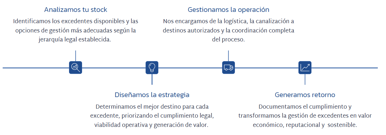 Una gestión operativa integral de los excedentes, con destinos autorizados, trazabilidad y documentación legal completa, sin necesidad de destruir producto.